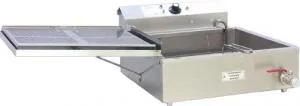 - высокопроизводительное оборудование, предназначенное для приготовления во фритюре разннообразых продуктов в условиях ресторанов, кафе, баров. Устройство великолепно жарит чебуреки, пирожки и пончики в любых, даже самых больших объемах. Благодаря небольшому весу и компактным габаритам, оно также эффективно и бесперебойно работает в передвижных пунктах питания.Конструктивно фритюрницы отличаются основательной герметизацией электродов внутри технологических трубок. ТЭНы агрегата, благодаря применению оригинального перфорированного вкладыша, нагреваются исключительно в зоне погружения во фритюр. А значит отсутствует эффект «бортовой полосы», преждевременно окисляющий горячее рабочее масло.