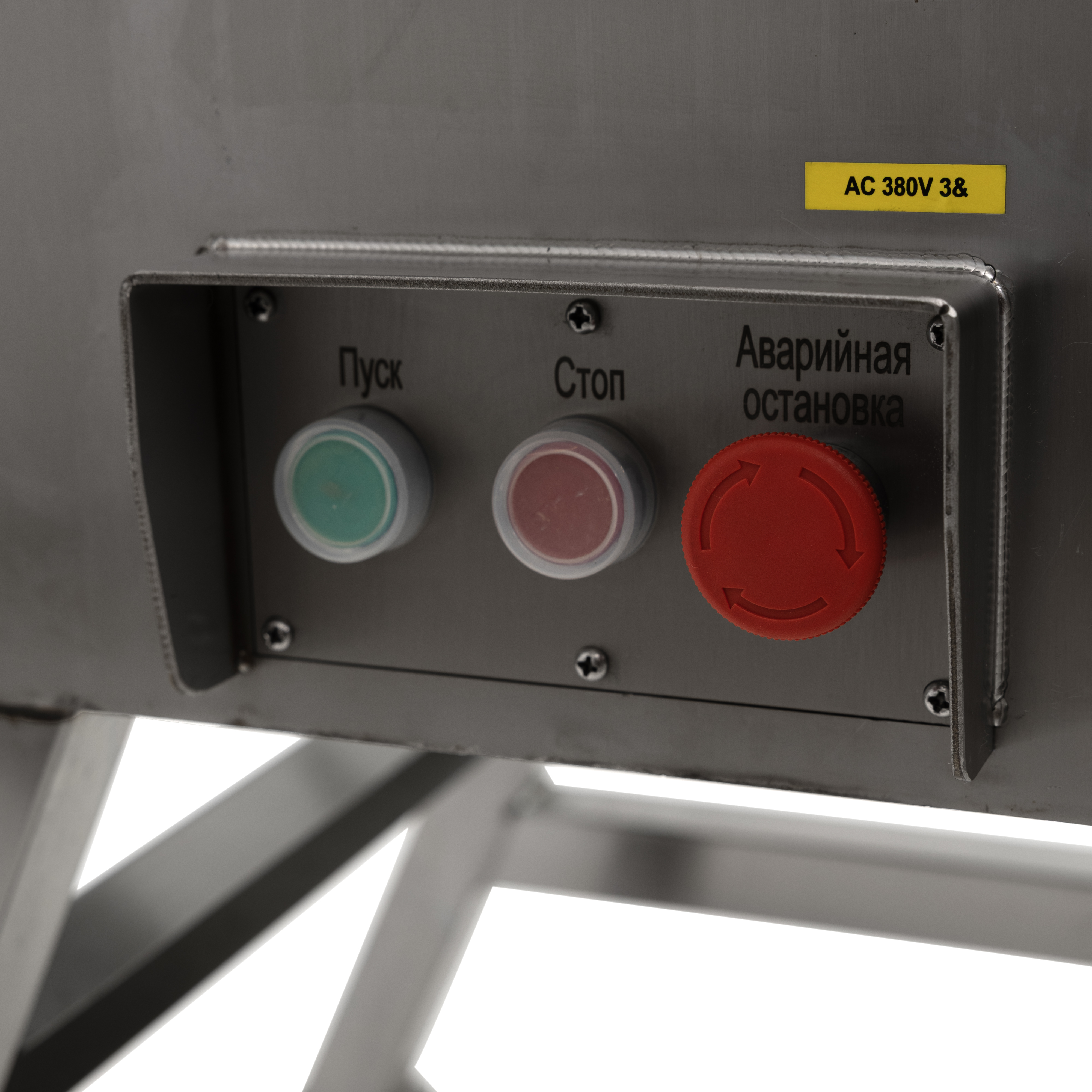 - Безопасность и надежность: Конструкция включает защитные ограждения, сбрасывающую решетку и соответствует строгим стандартам ТР ТС, а все детали, контактирующие с пищей, выполнены из гигиеничной нержавеющей стали.