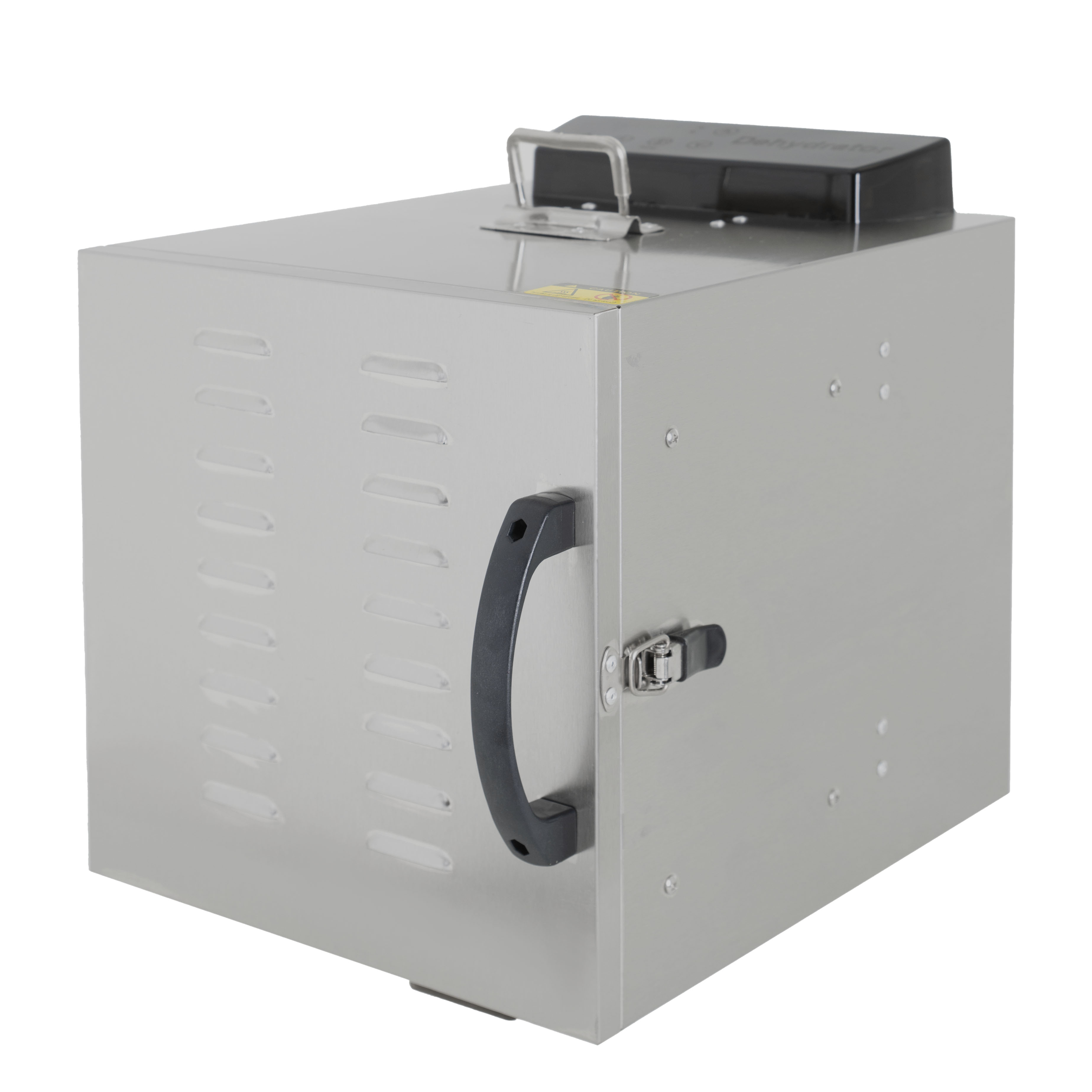 — это профессиональное оборудование горизонтального типа для щадящего обезвоживания пищевых продуктов методом конвекционной сушки, предназначенное для использования в кондитерских цехах, пекарнях, на предприятиях общественного питания и в точках реализации здорового питания. Аппарат оснащён нагревательным элементом (ТЭН) и вентилятором, расположенными на задней стенке камеры, что обеспечивает равномерное распределение горячего воздуха по всем уровням без необходимости перекладывать сырьё. Устройство подходит для сушки овощей, фруктов, зелени, грибов, мяса, рыбы, а также для приготовления йогуртов, сухариков и вяленых деликатесов. Компактные габариты и продуманная конструкция позволяют эффективно использовать рабочее пространство профессиональной кухни.